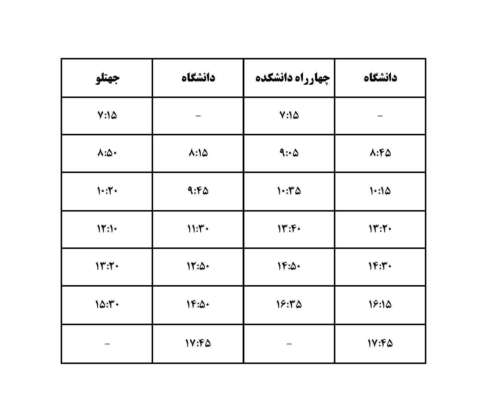 برنامه موقت سرویسهای ایاب و ذهاب دانشجویی- مسیر چهار راه دانشکده و سایت جهتلو