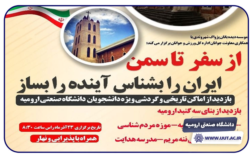 دومین رویداد «از سفر تا سمن» با شعار «ایران را بشناس، آینده را بساز»، به همت مؤسسه دیدبانان پژواک شهروندی و با همکاری معاونت فرهنگی و دانشجویی دانشگاه صنعتی ارومیه و معاونت جوانان ادارهکل ورزش و جوانان استان آذربایجان غربی، با حضور پرشور بیش از ۷۰ نفر از دانشجویان این دانشگاه برگزار شد.