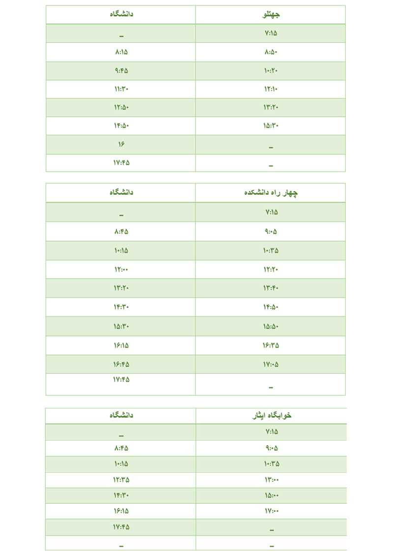 برنامه حرکت سرویس های دانشجویی دانشگاه صنعتی ارومیه در نیم سال اول