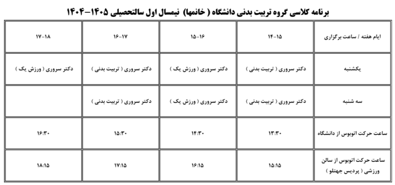 ساعت حرکت سرویس های دانشجویی گروه تربیت بدنی (خانمها)