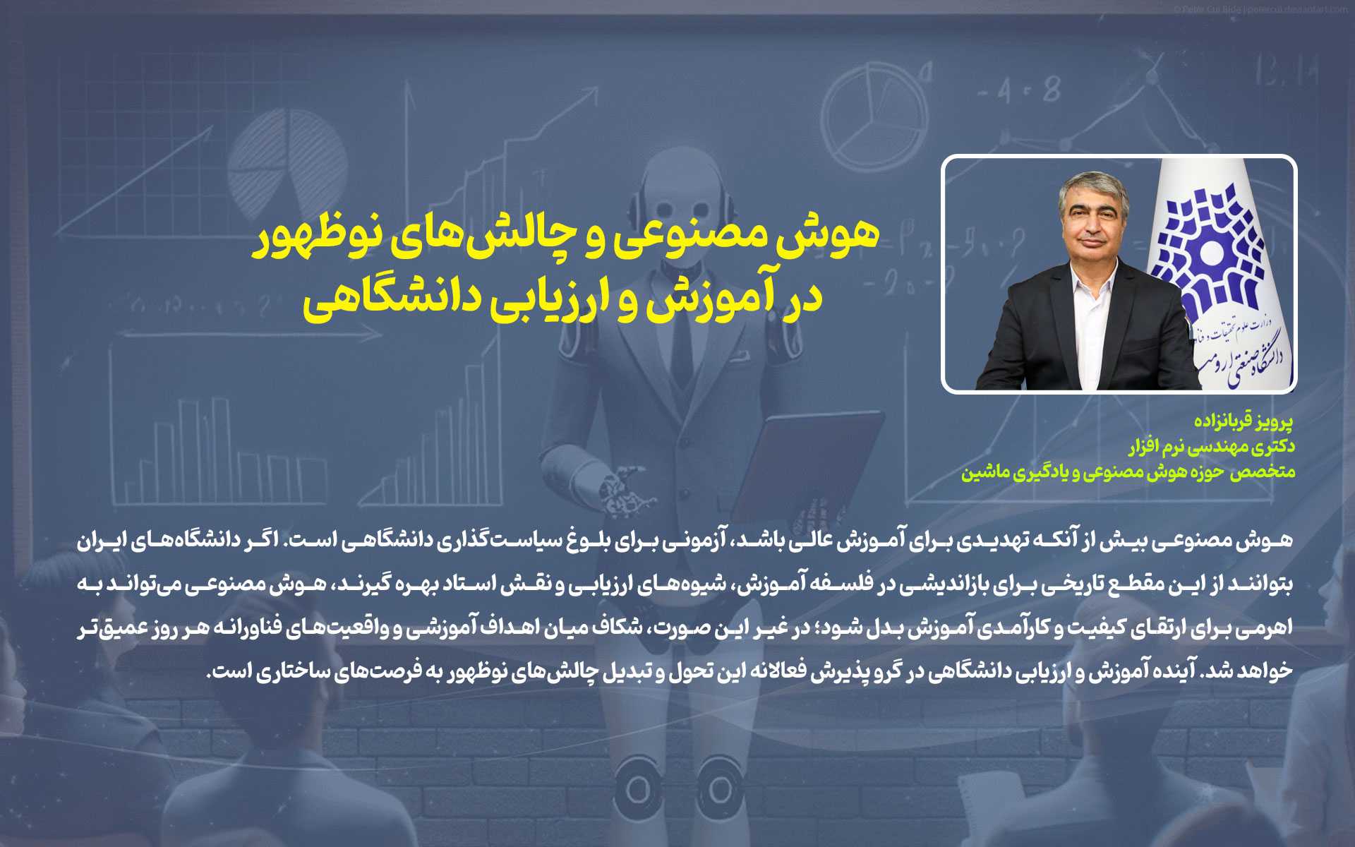 پرویز قربان زاده دکتری نرم افزار و متخصص حوزه هوش مصنوعی و یادگیری ماشین: هوش مصنوعی و چالشهای نوظهور در آموزش و ارزیابی دانشگاهی