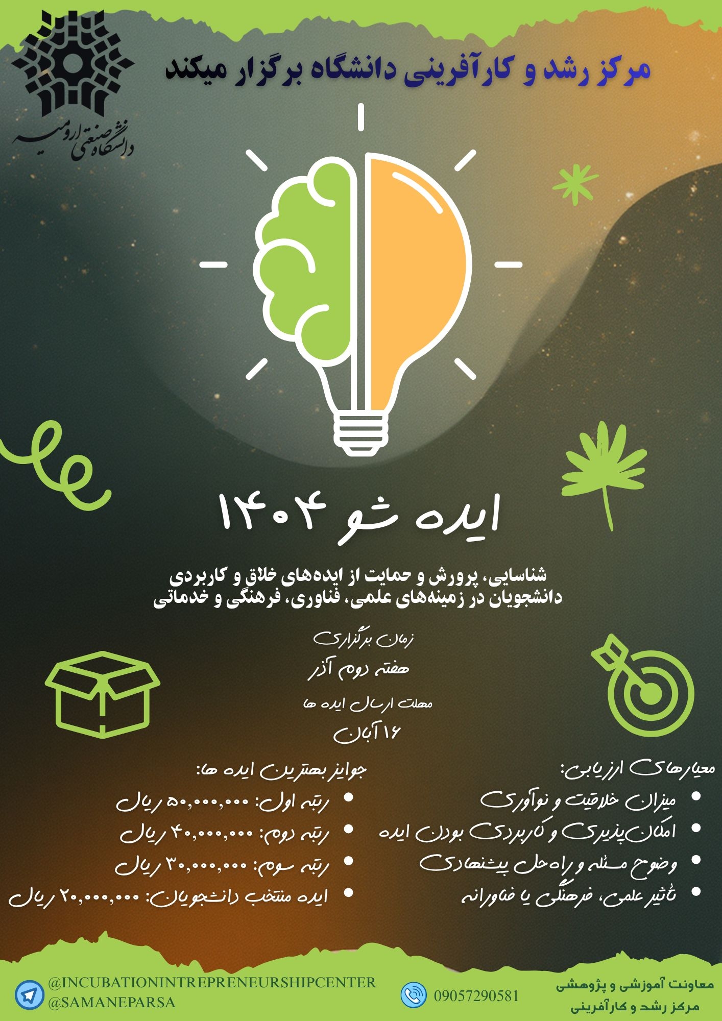 مرکز رشد و کارآفرینی دانشگاه صنعتی ارومیه برگزار میکند :
