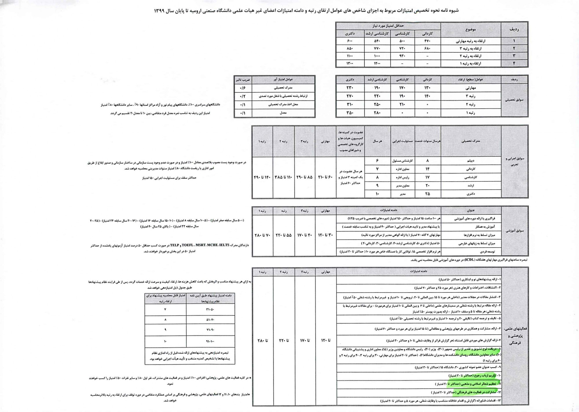 جدول امتیازات ارتقاء رتبه اعضای غیر هیات علمی دانشگاه