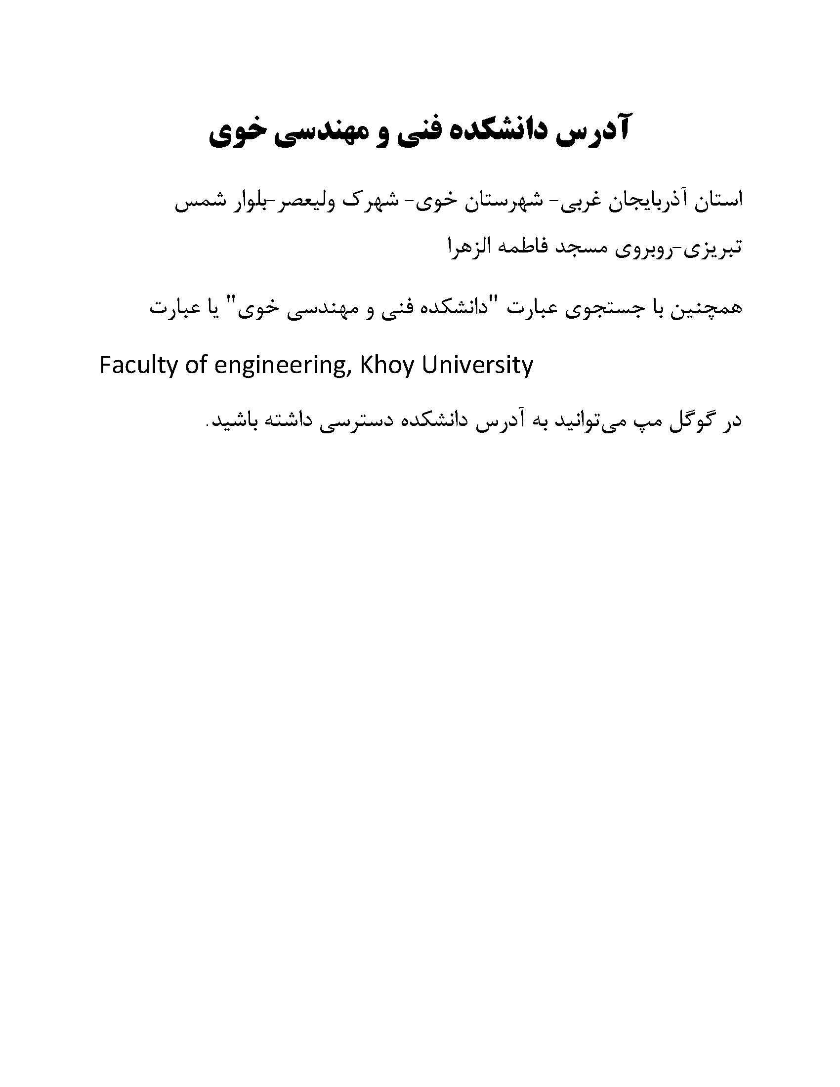 آدرس دانشکده فنی و مهندسی خوی (جهت اطلاع پذیرفته شدگان جدید)